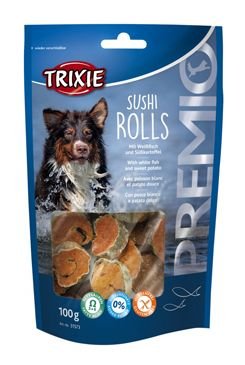 Pamlsky pro psy Premio SUSHI BITES Light - 100% rybí kolečka je skvělá psí pochoutka ze 100% rybího masa (bílá ryba).