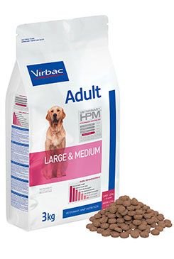 Granule Virbac Veterinary HPM Adult Large & Medium byly speciálně vyvinuty pro psy středních plemen od 12 měsíců věku a psy velkých plemen od 18 měsíců věku. V tomto období života potřebují psi vyváženou stravu, která jim pomůže udržet si zdravou hmotnost a zachovat svalovou hmotu. Složení těchto granulí je bohaté na funkční složky a má mnoho výhod pro zdraví vašeho domácího mazlíčka: nejenže podporuje odolnost kloubů a přispívá ke zdravé kůži a srsti, ale také zlepšuje trávení a další tělesné funkce.