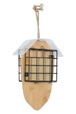 Závěsné bambusové krmítko s plastovou stříškou na lojové bloky.