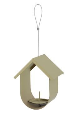 Závěsné kovové krmítko se stříškou, na lojovou kouli.