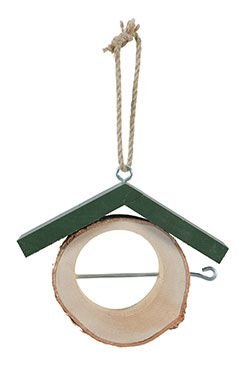 Budka (krmítko pro ptáky) na jablko z masivního dřeva o tloušťce 17 mm pro volně žijící ptactvo. Přírodní vzhled dřeva, který splyne se zahradou, dodáváno se silným provazem k zavěšení.