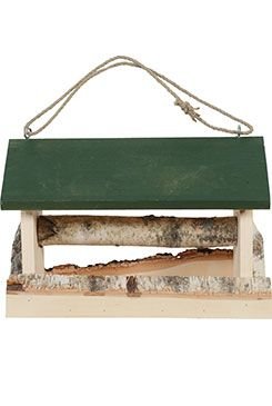 Budka (krmítko pro ptáky) se střechou z masivního dřeva o tloušťce 17 mm pro volně žijící ptactvo. Přírodní vzhled dřeva, který splyne se zahradou, dodáváno se silným provazem k zavěšení.
