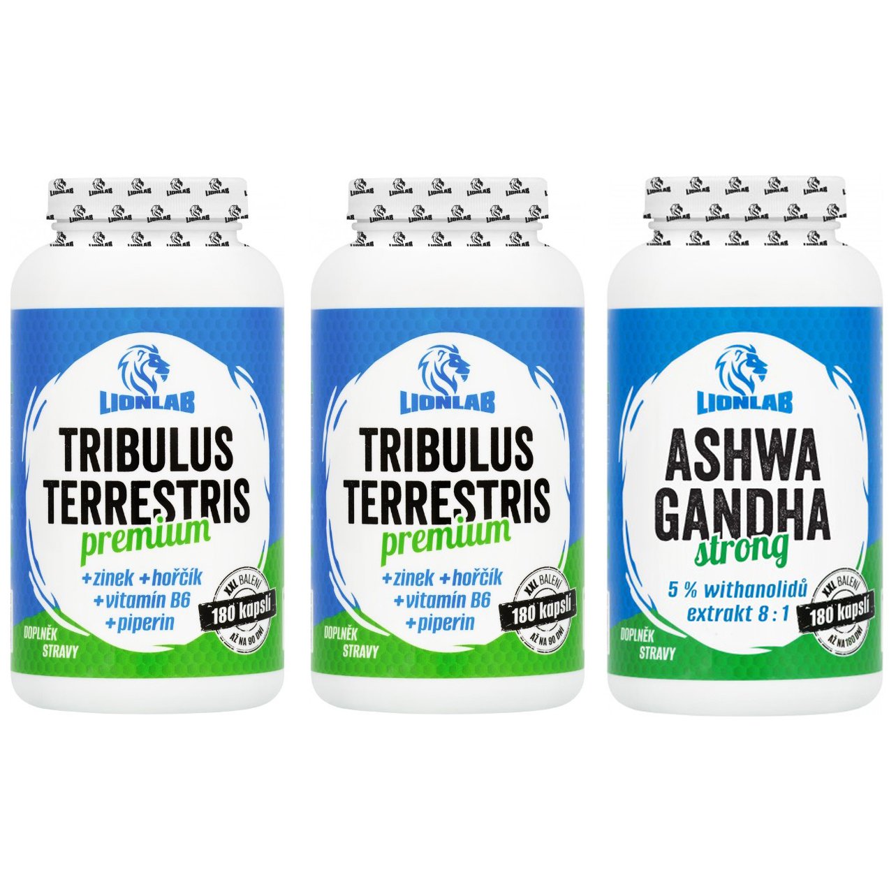 Extrémně výhodný akční balíček obsahující 2 velké 180kapslové balení silného Tribulu Terrestris a k tomu další 180kapslové balení Ashwagandha Strong XXL.