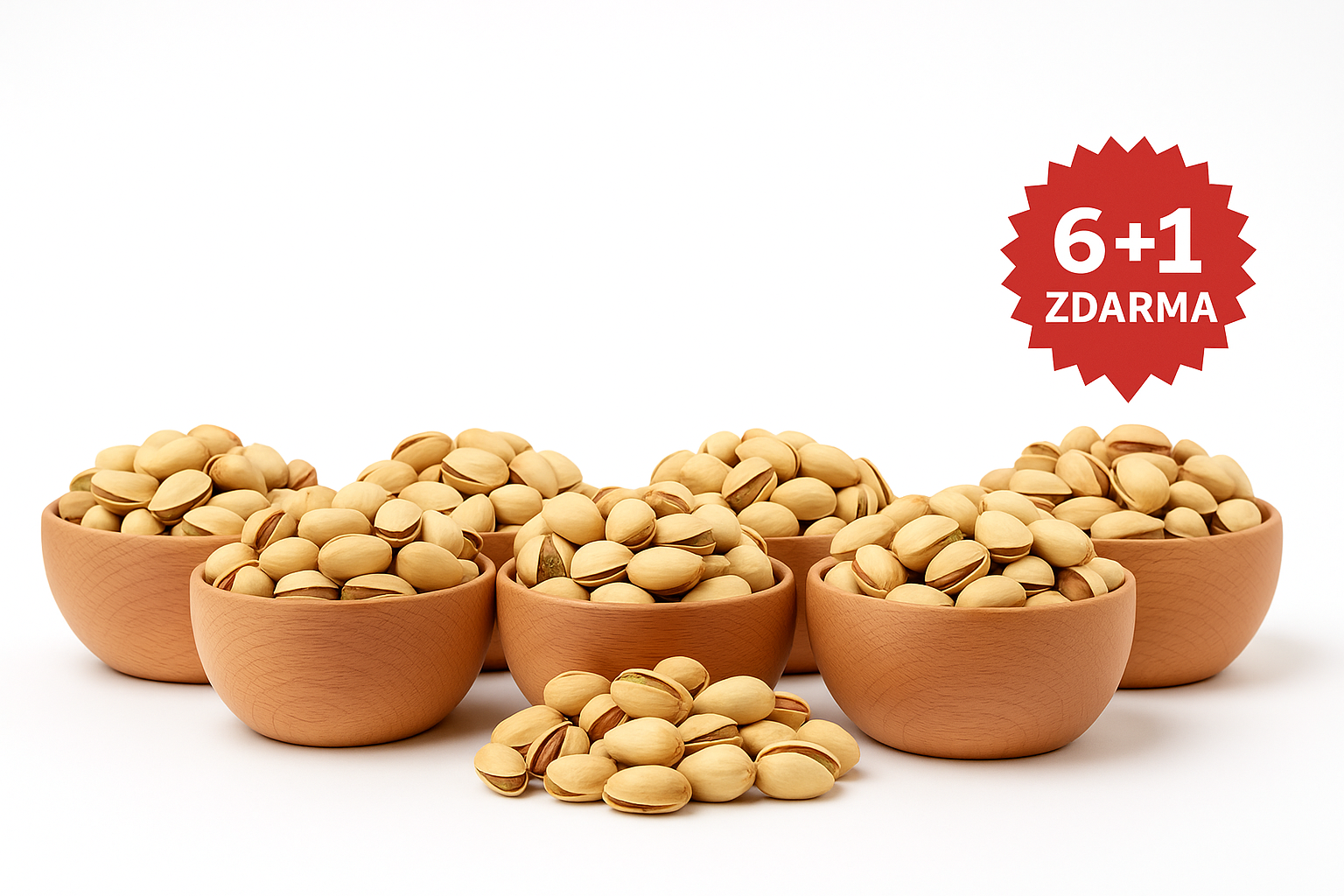Ochutnejte výhodnou akci! K nákupu 6 balení pistácií získáte 1 zcela zdarma. Skvělé jako zásoba do spíže, k televizi i jako dárek – výborné pistácie za výjimečnou cenu, jen omezenou dobu.