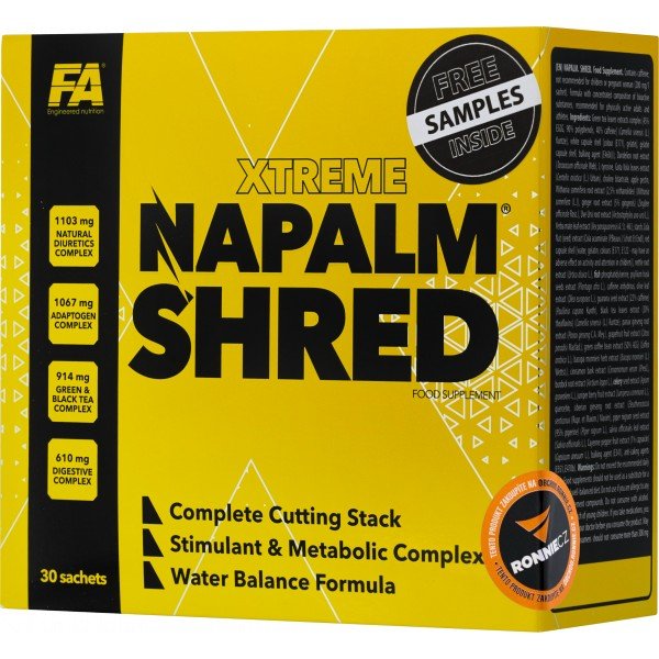 Xtreme Napalm Shred je produkt vytvořený pro osoby, které hledají účinnou a komplexní podporu při práci na štíhlém těle. Vícesložková receptura produktu zaručuje multidimenzionální účinek na tělo, který je skutečným pomocníkem v boji s tvrdohlavou tukovou tkání a nežádoucí váhou. Receptura je určena rekreačně trénujícím i profesionálním sportovcům a všem milovníkům zdravé a pestré výživy – přípravek nevyžaduje investice do dalších polovičních opatření a zaručuje účinné působení. Jeho forma - praktické sáčky obsahující kapsle - zajišťuje rychlé a pohodlné dávkování.