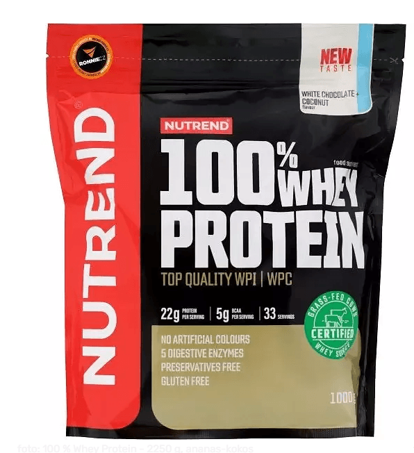 | Bílkoviny: | Syrovátkový proteinový koncentrát, Syrovátkový proteinový izolát |