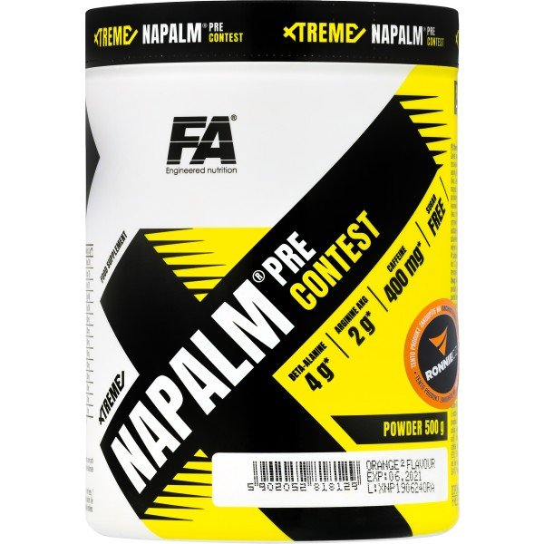 Xtreme Napalm Pre-Contest z řady Xtreme je předtréninkový stimulant nové generace navržený za účelem vyvolání silného stimulačního efektu fungujícího na principu "svalové pumpy" během vysoce náročných tréninkových seancí. Každá z fyziologicky aktivních složek byla vybrána tak, aby vyvolala co nejefektivnější dopad na Vaši muskulaturu. Na rozdíl od klasických předtréninkových doplňků, složkové komplexy obsažené v Napalm Pre-Contest opravdu fungují, což přímo dokládají výsledky kulturistů.