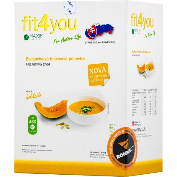 Nízkokalorická polévka pro aktivní život obsahuje jen 110 - 113 kcal v jedné porci, díky čemuž Vám může dopomoci získat vysněnou postavu. Fit4you proteinová polévka je chuťově neodolatelná a je vhodná jako náhrada oběda či večeře. Bílkovinová polévka obsahuje syrovátkový proteinový koncentrát (WPC 80) a je obohacena o všechny potřebné vitamíny a minerály, které jsou nezbytné pro Vaše tělo.