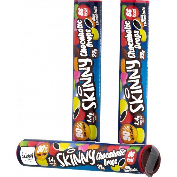 Milujete lentilky? Skinny Chocaholic Drops nabízejí jejich variantu se sníženým obsahem cukru, bez palmového oleje a vhodnou pro vegetariány. V celém balení je pouze 86 kcal. Jsou plné chuti, takže uspokojí Vaše potřeby po čokoládě, ale bez pocitu viny. Lehké, vzdušné a plné chuti, sladké, jemné a křupavé. Dopřejte si mlsání s produktem s obsahem cukru o 90 % nižším, než jaký mají běžné vedoucí značky obdobných sladkostí - pouze 1,4 g cukru na celé balení. Perfektní pro všechny, kteří pečlivě počítají kalorie!