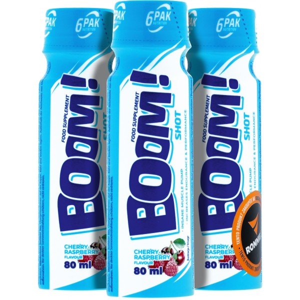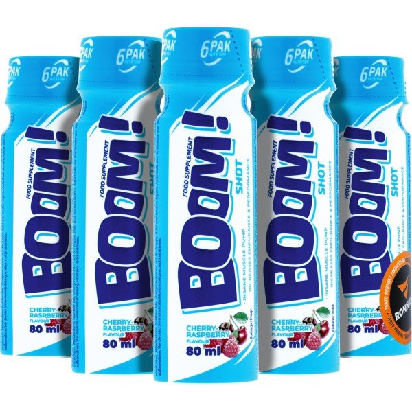 Boom! Shot je efektivní NO booster, jehož použití před tréninkem výrazně zlepší účinek svalové pumpy. Receptura je založena na nejlepších účinných látkách v pevných dávkách (bez stimulantů). Tekutá forma navíc zlepšuje stravitelnost každé porce. Produkt je připraven k použití, stačí protřepat.