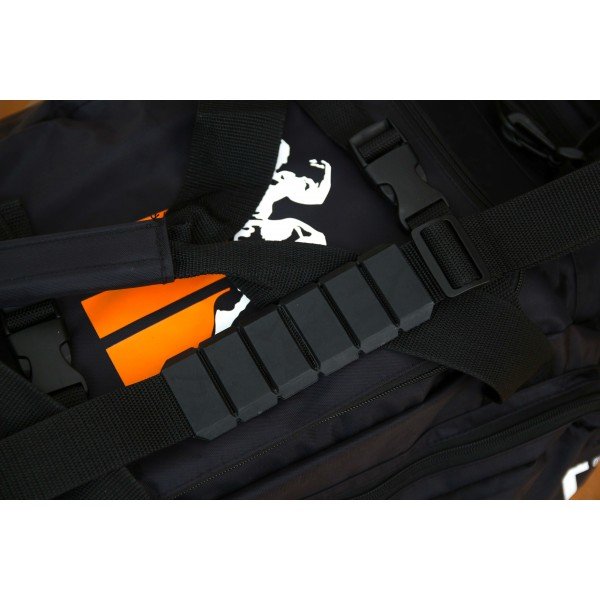 Na boční podélné kapse potisk nápisu a symbolu Extrifit v oranžovo-bílém provedení. Na vršku hlavního úložného prostoru symbol firmy Extrifit (potisk).
