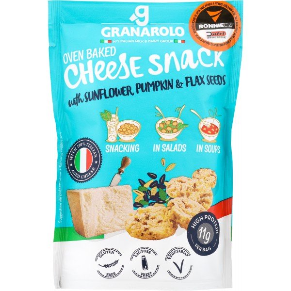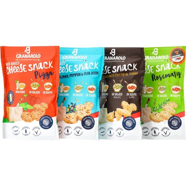 Lahodné křupavé kousky vysušených zralých sýrů, doplněné v některých verzích o příchuť pizzy či lanýžů, přinášejí skvělou inspiraci pro zdravé svačinky v průběhu celého dne. Rádi mlsáte u televize? Nahraďte promaštěné chipsy sýrovými kousky, které nenaruší Váš zdravý životní styl a sportovní snažení, naopak Vám dodají další porci proteinů a potřebného vápníku. Sáčky plné dobrot jsou vyráběny přímo v Itálii firmou Granarolo, právě tam, kde zrající sýry dostávají svůj charakter!