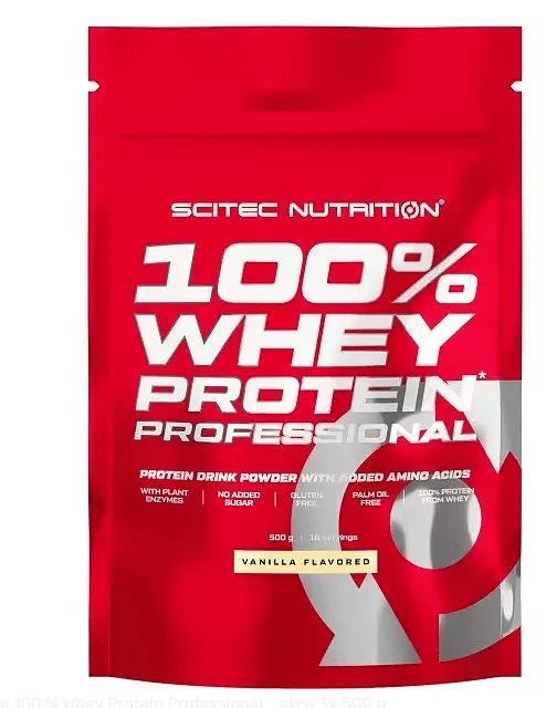 Whey Protein Professional od společnosti Scitec Nutrition obsahuje vysoký podíl kvalitních syrovátkových bílkovin získaných ultra-mikrofiltračním procesem, obohacených o trávicí enzymy papain (extrahovaný z papáji) a bromelain (z ananasovníku). Proteinová složka obsahuje cca 23 % aminokyselin BCAA (5 g v každé dávce) a 18 % L-glutaminu (4 g v dávce).