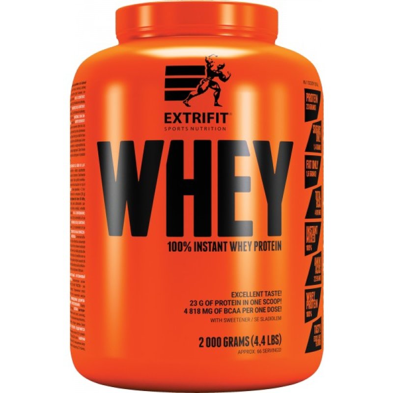 100 % Whey Protein je plně instantní, skvěle se rozpouští. chutná a jeho příprava je tedy velmi snadná. Hotový nápoj má velmi příjemnou konzistenci. Příjem tohoto vysoce kvalitního zdroje bílkovin přispívá k růstu svalové hmoty a k jejímu udržení v situacích, kdy je ohrožena katabolizací. 100 % Whey Protein od Extrifitu je výborně stravitelný protein za skvělou cenu. Vytvořili jsme proteinový nápoj pro každého, kdo chce vyzkoušet kvalitu Extrifit a přitom chce šetřit.