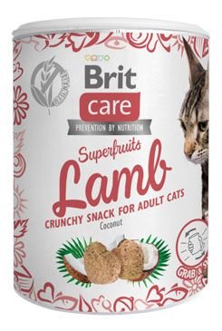 Doplňkové krmivo bez obilovin pro dospělé kočky. Křupavý pamlsek s jehněčím a se „SUPERFRUITS“ – s kokosem. Chrastící křupavé pamlsky kočku přilákají a strhnou ke společné zábavě.