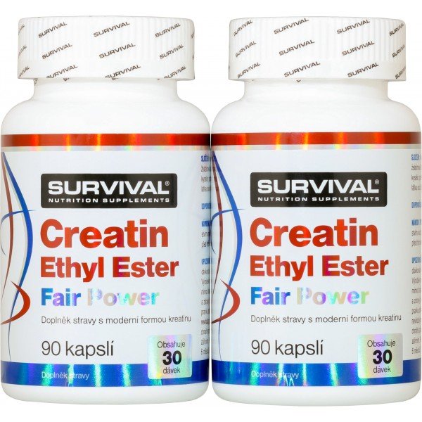 Kreatin ethyl ester je jedním z nejoblíbenějších suplementů ve sportech různých kategorií. Využívají jej především návštěvníci posiloven, a to z řad kondičních cvičenců či závodníků, vzpěrači, siloví trojbojaři, strongmani, ale také třeba sprinteři, hokejisté nebo plavci. Creatin Ethyl Ester Fair Power společnosti Survival obsahuje v každé kapsli 500 mg účinné látky v nejvyšší kvalitě. Tu garantuje majitel trenérské školy Ronnie.cz a uznávaný trenér Pavel Provázek.