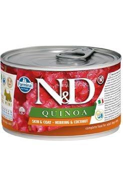 Farmina N&D Quinoa Herring & Coconut je krmivo pro zvláštní účely výživy určené k podpoře omezení intolerance určitých komponentů a živin.