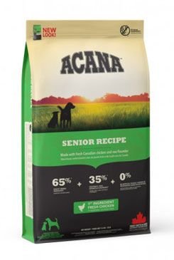 PŘIPRAVOVÁNO V NAŠICH OCEŇOVANÝCH KUCHYNÍCH V KANADĚ. ACANA SENIOR PŘEKYPUJE ČERSTVÝMI MÍSTNÍMI SUROVINAMI VČETNĚ VOLNĚ CHOVANÝCH KUŘAT, VAJEC Z HNÍZDNÍCH CHOVŮ, PLATÝSE LOVENÉHO VOLNĚ V PŘÍRODĚ A NA SLUNCI ZRAJÍCÍHO OVOCE A ZELENINY – VŠECHNY SUROVINY DODÁVAJÍ VÝŽIVU A CHUTNOST A ZAJIŠŤUJÍ TAK DOBROU KONDICI STARŠÍCH PSŮ. PŘEČTĚTE SI NAŠE SLOŽENÍ A MYSLÍME, ŽE S NÁMI BUDETE SOUHLASIT.