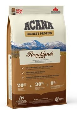 ACANA RANCHLANDS OBSAHUJE ANGUSKÉ HOVĚZÍ, VOLNĚ CHOVANÁ JEHŇATA, BIZONY A YORKSHIRSKÉ