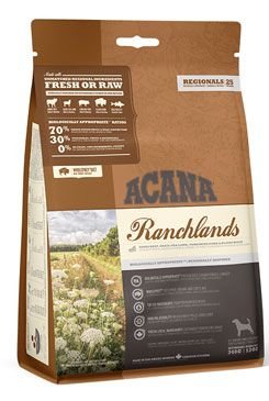 ACANA RANCHLANDS OBSAHUJE ANGUSKÉ HOVĚZÍ, VOLNĚ CHOVANÁ JEHŇATA, BIZONY A YORKSHIRSKÉ