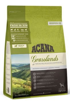 ACANA GRASSLANDS OBSAHUJE MASO Z VOLNĚ CHOVANÝCH JEHŇAT A KACHEN, VEJCE Z HNÍZDNÍCH CHOVŮ A SLADKOVODNÍ RYBY, VŠE DODÁVANÉ ČERSTVÉ NEBO SYROVÉ Z NAŠEHO REGIONU V PODÍLU CELÉ KOŘISTI, COŽ DODÁVÁ ŽIVINY PŘIROZENĚ, BEZ POTŘEBY DLOUHÉHO SEZNAMU UMĚLÝCH DOPLŇKŮ. S NÍZKÝM OBSAHEM SACHARIDŮ A VYSOKÝM OBSAHEM ŽIVOCIŠNÝCH PROTEINŮ PRO DOSAŽENÍ VRCHOLOVÉ KONDICE.