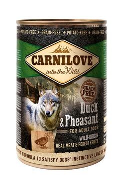 SLOŽENÍ: kachna (41 %), bažant (26 %), borůvky (2 %), brusinky (2 %), maliny (2 %), minerály (1 %), olej z lososa (0.1 %).