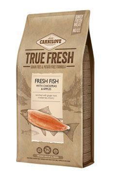 Receptura krmiva pro psy Carnilove True Fresh Fish obsahuje vysoký podíl masa ryb ze Severního moře i sladkovodních ryb z rybníků Jižních Čech. Ryby pocházejí výhradně z udržitelně řízeného rybolovu. Cizrna přidaná do krmiva je přirozeným zdrojem rostlinných bílkovin a minerálů nutných pro zdravý metabolismus. Jablka jsou vynikajícím zdrojem vlákniny nezbytné pro celkové zdraví zažívacího traktu. Zázvor a brusinky poskytují důležité antioxidanty a pomáhají budovat silnou přirozenou imunitu, zatímco kořen čekanky plní díky obsahu inulinu funkci prebiotika.
