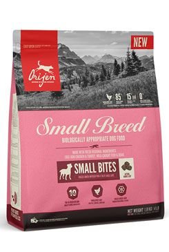 Tuto biologicky vhodnou recepturu jsme vytvořili, abychom vyhověli jedinečným potřebám našich milovaných malých přátel. ORIJEN SMALL BREED je velmi chutné krmivo s vysokým obsahem bílkovin, zcela bez obilovin a brambor. Vyrobeno z čerstvých a syrových ingrediencí poskytující kompletní výživu, kterou váš malý kamarád potřebuje, aby se mu skvěle dařilo každý den.