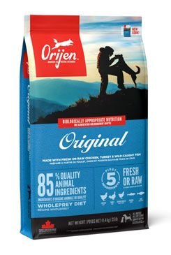 ORIJEN ORIGINAL obsahuje vysoký podíl proteinů z volně chovaných kuřat a krůt, ryb lovených v prírodních vodách a vajec z hnízdních chovů. Všechny suroviny jsou nám dodávány čerstvé nebo syrové v bohatě výživném podílu Celé kořisti. Plná nepřekonatelné přírodní chuti zaručí naše vítězně oceňovaná krmiva ORIJEN, že váš pes bude zdravý, spokojený a silný.
