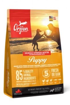 ORIJEN PUPPY překypuje proteiny z volně chovaných kuřat a krůt, ryb lovených v přírodních vodách a vajec z hnízdních chovů, to vše je nám dodáváno čerstvé v bohatě výživném podílu Celé kořisti. Plná živin, které podporují vrcholovou kondici a správný vývoj, zaručí krmiva ORIJEN, že vaše štěně bude zdravé, spokojené a silné. Přečtěte si naše složení a myslíme, že budete souhlasit.