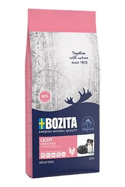 Složení krmiva Bozita Light odpovídá potřebám psů trpících nadváhou nebo psů se sníženou aktivitou. Na velikosti a plemenu psa nezáleží. Krmivo obsahuje všechny důležité látky a živiny, které pes potřebuje. To vše při sníženém obsahu energie. Čerstvé kuřecí maso švédského původu je zdrojem cenných bílkovin a nezatěžuje trávení. Inulin z čekanky, FOS a lněné semínko obsahují přírodní balastní látky, které stabilizují střevní mikroflóru a ovlivňují vstřebávání živin. Prášek ze šípku obsahuje antioxidanty, které posilují imunitní systém a předcházejí zánětlivým onemocněním kloubů.