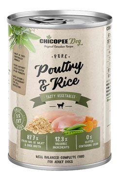 Maso a produkty živočišného původu 67 % (z toho 30 % kachny, 25 % kuřete), kachní vývar (20,7 %), zelenina 6 % (mrkve 4 %, hrášku 2 %), rýže (5 %), minerály (1 %), řepkový olej (0,2 %), inulin (0,1 %).
