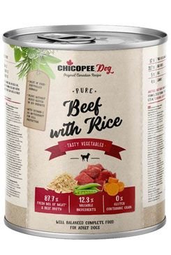 Maso a produkty živočišného původu 67 % (z toho 26 % hovězí), hovězí vývar 20,7 %, zelenina 6 % (mrkev 4 %, hrášek 2 %), rýže 5 %, minerály 1 %, řepkový olej 0,2 %, inulin 0,1 %