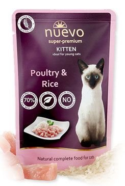 Krmivo Nuevo sterilized drůbeží s rýží je kompletní krmivo pro koťata, obohaceno o kuřecí maso s rýží. Vysoký obsah masa a přírodních surovin, žádné umělé přísady, obiloviny či lepek dělají z tohoto krmiva opravdu vysoce kvalitní pochoutku, kterou si zamilují i ty nejvybíravější kočičky!