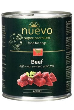Vlastností stravy nuevo Hovězí je vysoký obsah masa o hodnotě 72 % obsahující velké množství cenných bílkovin. Dokonale vyvážená a komplexní strava s optimální úrovní všech výživných látek, esenciálních vitamínů a minerálů. nuevo Hovězí je výborný zdroj energie, výborně stravitelná a obzvláště chutná strava.