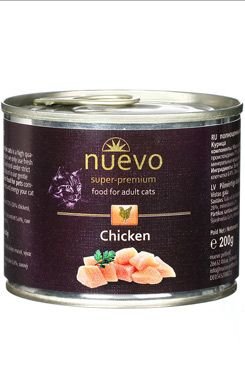 Konzervou Nuevo kočka adult Kuře potěšíte každou vybíravou kočičku a dopřeje jí tak nezapomenutelný gurmánský zážitek. Konzerva je bohatá na vysoký podíl kvalitního masa (71%) s velkým množstvím cenných bílkovin je odpovědí na individuální potřeby citlivé kočky – pouze čerstvé maso obohacené o esenciální vitamíny a minerály. Výborný zdroj energie, výborně stravitelná a obzvláště chutná strava.