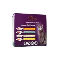 Nuevo kočka adult kuře a losos kapsička je kompletní krmivo pro dospělé kočky všech plemen, obohacené o kuřecí a lososí maso. Toto krmivo se může pyšnit svojí kvalitou, kterou reprezentuje vysoký obsah masa a přírodních suroviny, naopak neobsahuje žádné umělé přísady, obilí a lepek. Složení: 72% masa (42% kuřecího, 30% lososího), 26,5% vývar, 1%minerálních látek, 0,5% lososového oleje.