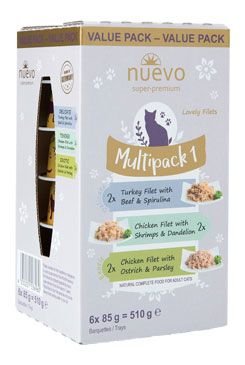 nuevo vaničky – masové filety jsou celé kousky nejkvalitnějšího masa kuřete, krůty či lososa. Receptury v sobě kombinují veškeré vitamíny a minerály tak, aby odpovídaly přirozené denní dávce. Na výběr je 9 skvělých variant, aby žádná z nich vaší kočce nezevšedněla.