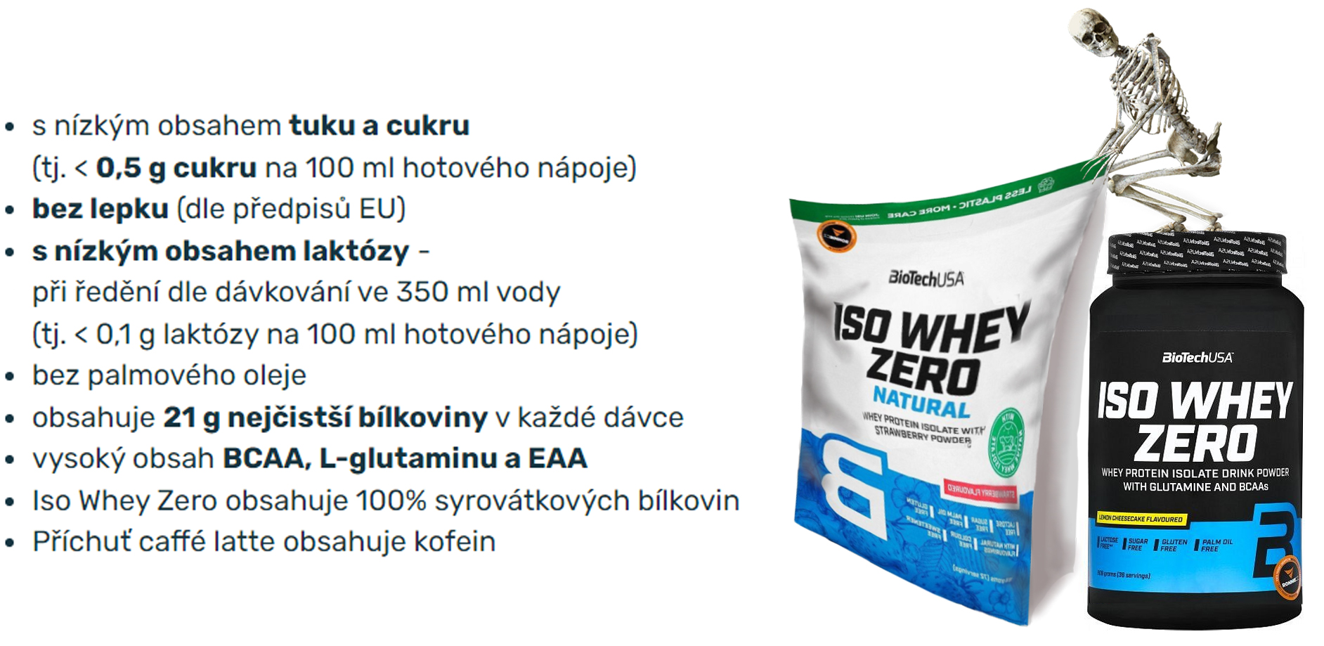 Je velmi důležité, aby potřebné aminokyseliny byly k dispozici v přiměřeném množství pro naše svaly. Naštěstí můžeme předejít nedostatku aminokyselin konzumací doplňků, které obsahují vysoce kvalitní a vysoce účinné bílkoviny v potřebném množství. Iso Whey Zero nabízí dokonalé řešení v plném rozsahu tvrdě trénujícím sportovcům, pro které jsou rychle vstřebatelné aminokyseliny nepostradatelné pro úspěšný tréninkový program.