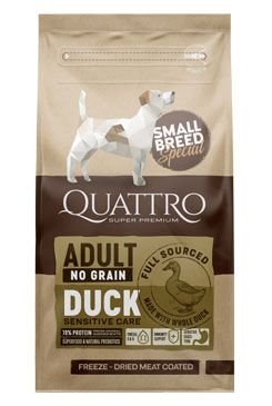 Quattro „malá plemena“ řada je vyrobena bez obilovin, jako je pšenice, sója, ječmen a dalších látek způsobující alergické reakce.