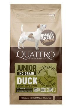 Quattro „malá plemena“ řada je vyrobena bez obilovin, jako je pšenice, sója, ječmen a dalších látek způsobující alergické reakce.