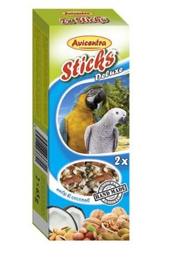 Doplňkové krmivo pro velké papoušky. Tyčinky s ořechy jsou výbornou pochoutkou, ale také krmivem, které Vašemu mazlíčkovi dodává důležité vitamíny a minerály pro zdravý a vitální život. Tyčinky jsou speciální krmivo, kde musí Váš mazlíček vyvinout úsilí k získání své potravy podobně jako v přirozeném prostředí. To napomáhá jeho fyzické a psychické kondici.
