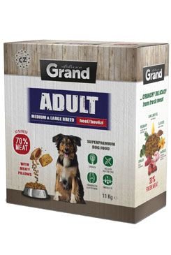 Kompletní krmivo pro dospělé psy středních a velkých plemen s křupavými masovými polštářky vyniká svou chutností, lehkou stravitelností a vysokou výživovou hodnotou. Krmivo je vyrobeno z čerstvého masa a obohaceno o domácí zeleninu, ovoce, špenát, Omega 3 a 6 mastné kyseliny a bylinky - je tak ideální volbou pro Vašeho čtyřnohého parťáka. Krmivo pro psy neobsahuje chemické konzervační přísady, barviva ani dochucovadla.