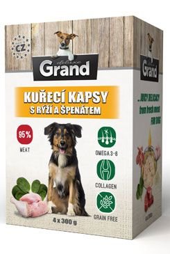 Grand DELUXE kapsa kuřecí s rýží a špenátem je kompletní mokré krmivo pro všechny dospělé psy. Je připraveno z čerstvého masa a šetrný proces vaření v páře zajištuje zachování jeho chutnosti, strukturu a výživové hodnoty.