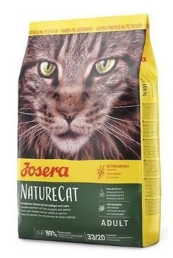Krmivo Josera Nature Cat neobsahuje žádné obiloviny a je proto vhodné i pro nutričně citlivé kočky a koťata od 6. měsíců věku. Extra porce drůbežího masa (29%) a maso z lososa (10%) dodají organismu dostatečné množství kvalitních bílkovin. Výjimečnou chuť dodají krmivu vybrané bylinky, ovoce a zelenina. Zajistí nejen vítanou změnu v kočičím jídelníčku, ale také přísun důležitých živin. Kromě máty peprné a petrželky obohacují recepturu také arónie, borůvky, šípek a další rostlinné výtažky. Optimální poměr vápníku a fosforu a snížený obsah magnézia napomáhají regulaci pH hodnoty moči (6,0 – 6,5). Tím krmivo napomáhá redukovat tvorbu močových kamenů, což je u koček častý zdravotní problém. Křupavé granule navíc obsahují vlákninu, která napomáhá vylučování smotků chlupů. Krmivo Josera Nature Cat je obohaceno o celou řadu vitamínů, minerálních látek a stopových prvků, které přispívají ke správné funkci orgánů a podporují dobrou kondici organismu. Taurin, což je látka pro kočky zcela nezbytná, posiluje srdeční sval a zrak. Kompletní přírodní krmivo bez umělých přísad prémiové německé značky Josera, jejímž prvořadým cílem je vysoká kvalita nabízených krmiv.