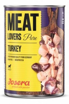 Přesně to reprezentuje krmivo pro psy od Josery svým jménem: Meat Lovers Pure Turkey neobsahuje obiloviny ani lepek a je dokonalým mokrým krmivem s prémiovou špičkovou kvalitou, určeným pro čtyřnohé milovníky masa. Jak už slibuje jeho název, malí mlsalové najdou v plechovce 68 % chutného krůtího masa, lahodný vývar a minerální látky. Nic jiného – protože víc není třeba. Jen dokonalý požitek z masa! Samozřejmě Josera ví, že přídavek cukrů, barviv, aromat a konzervačních látek zde nemá co dělat. Proto je budete v jejich krmivu hledat marně.