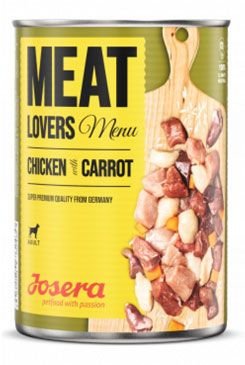 Pro čtyrnohé masožrouty, kteří se rádi vzdají zbytečných přísad, o to víc však ocení pořádnou porci dobrého masa, Josera připravila menu Chicken with Carrot. Menu je kombinací šťavnatého kuřete, doplněného o hovězí a vepřové maso, které spolu s rýží a mrkví vytvářejí neodolatelné krmivo pro dospělé psy. Neobsahuje lepek ani přidaný cukr, barviva, aromata nebo konzervační látky. Čestné slovo milovníků masa!