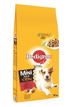 Kompletní krmivo pro dospělé psy malých plemen v běžné fyzické zátěži s hovězím a zeleninou. Pedigree Mini obsahuje menší granule, které přinášejí psovi větší požitek z krmení. Šťavnaté polovlhké granule jsou plné bílkovin a díky svě struktuře jsou skvělé na žvýkání. Granule jsou speciálně tvarovené tak, aby při chroupání podporovaly zdravé dásně a zuby. Křupavé polštářky jsou zdrojem vybraných druhů přírodních vláknin na podporu dobrého zdraví, plněné jemnou masitou náplní. Pečlivě vybraná zelenina obsahující minerály a vitaminy. Lehce stravitelná rýže.