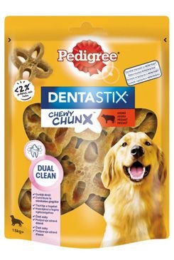 Pedigree Denta Stix Chewy jsou relativně měkké a ohebné. Tvar, dejme tomu květiny, umožňuje se do pamlsku přímo zakousnout. Pamlsek se zmáčkne a zub jím projede do otvoru. Následně se zub vytahuje z pamlsku a vše se opakuje. Všimli jste si? – zub projíždí hmotou pamlsku tam a zpět – tím se o něj tře, a právě tímto efektem je ze zubu stírán zubní plak. Tedy ne tvrdý a pevný pamlsek, ale právě měkká konzistence je stylem Pedigree Denta Stix Chewy v boji proti zubnímu plaku.