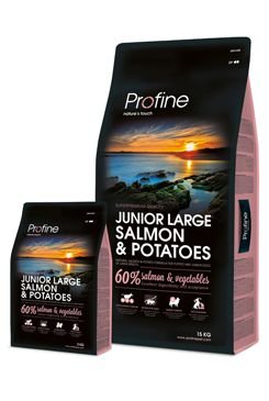 Přírodní krmivo z lososa a brambor pro štěňata a mladé psy velkých plemen.